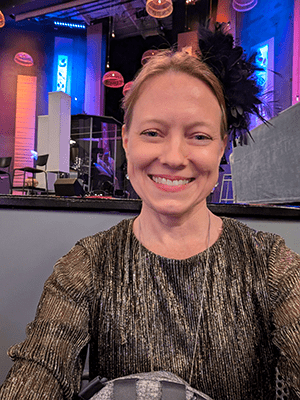 button nose crinkles above heart-shaped lips as she smiles warmly. “I’m Marie.